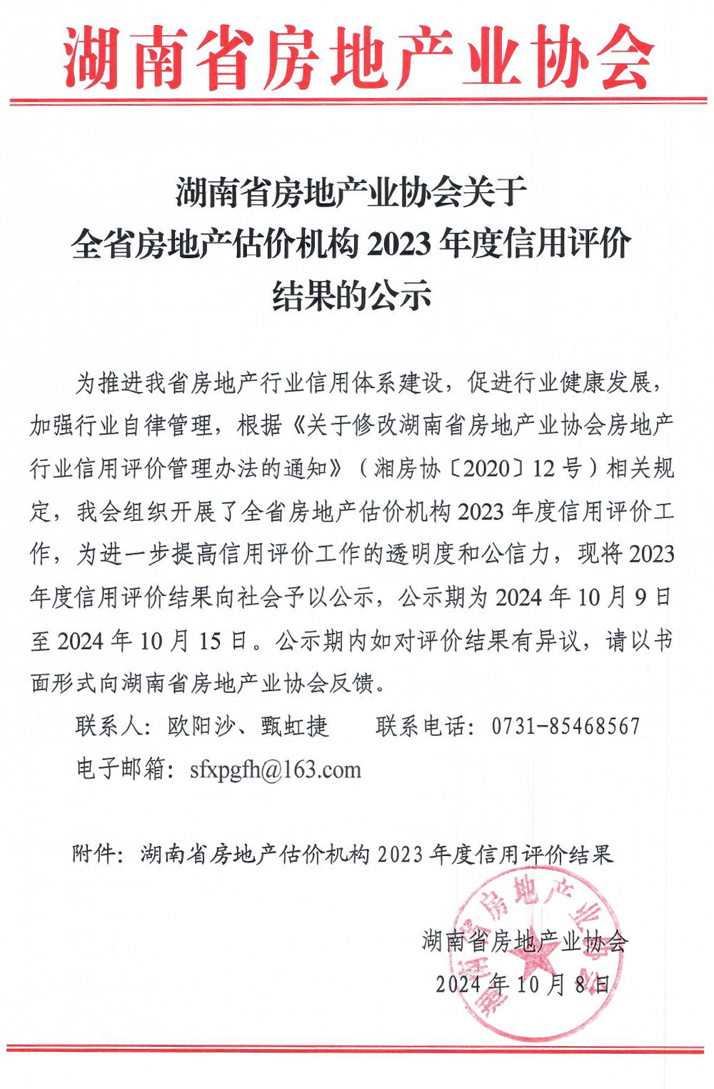 關(guān)于全省房地產(chǎn)估價機構(gòu)2023年度信用評價結(jié)果的公示