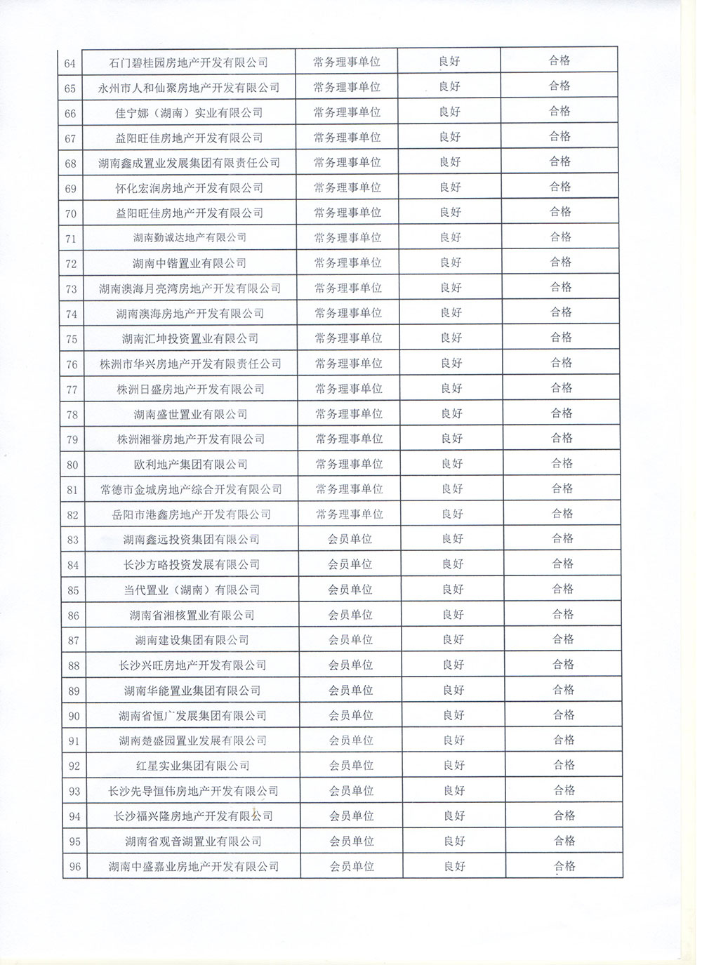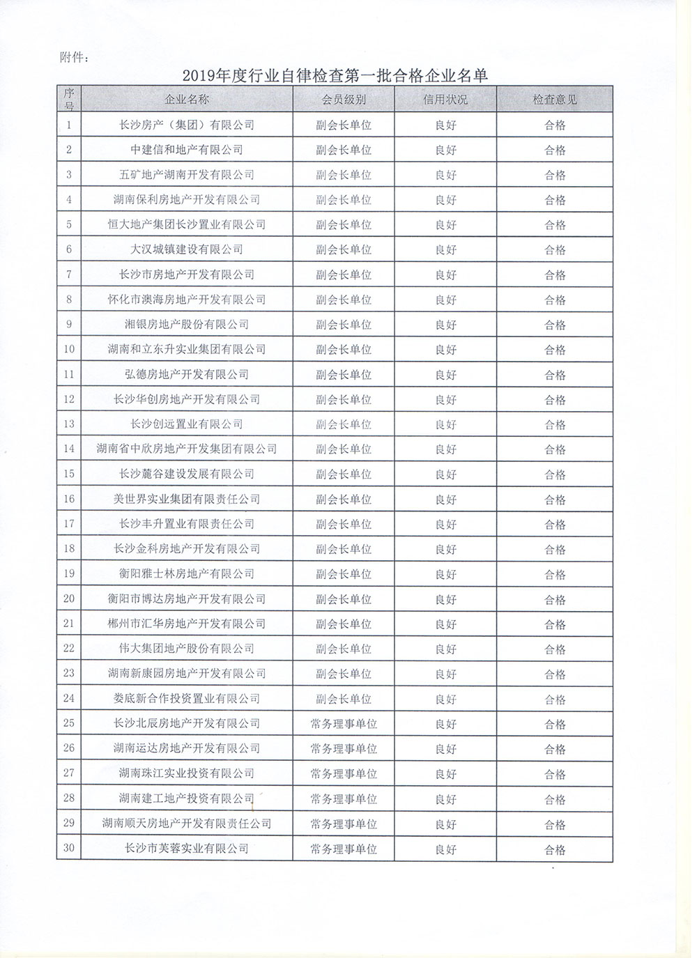 依據(jù)《國務(wù)院關(guān)于促進(jìn)市場公平競爭維護(hù)市場正常秩序的若干意見》(國發(fā)〔2014〕20號)、《湖南省房地產(chǎn)行業(yè)信用信息管理辦法》(湘建房〔2011〕196號)等有關(guān)規(guī)定,省房協(xié)開發(fā)委對全省房地產(chǎn)開發(fā)會員企業(yè)開展了2019年度行業(yè)自律檢查工作。為保證自律檢查公開、公平、公正,現(xiàn)將195家合格企業(yè)名單予以上網(wǎng)公吿,可在湖南省房地產(chǎn)行業(yè)信用信息平臺、湖南省房地產(chǎn)業(yè)協(xié)會官網(wǎng)和湖南省房地產(chǎn)業(yè)協(xié)會微信公眾號上查詢,接受社會監(jiān)督。(檢查意見詳見附件)。