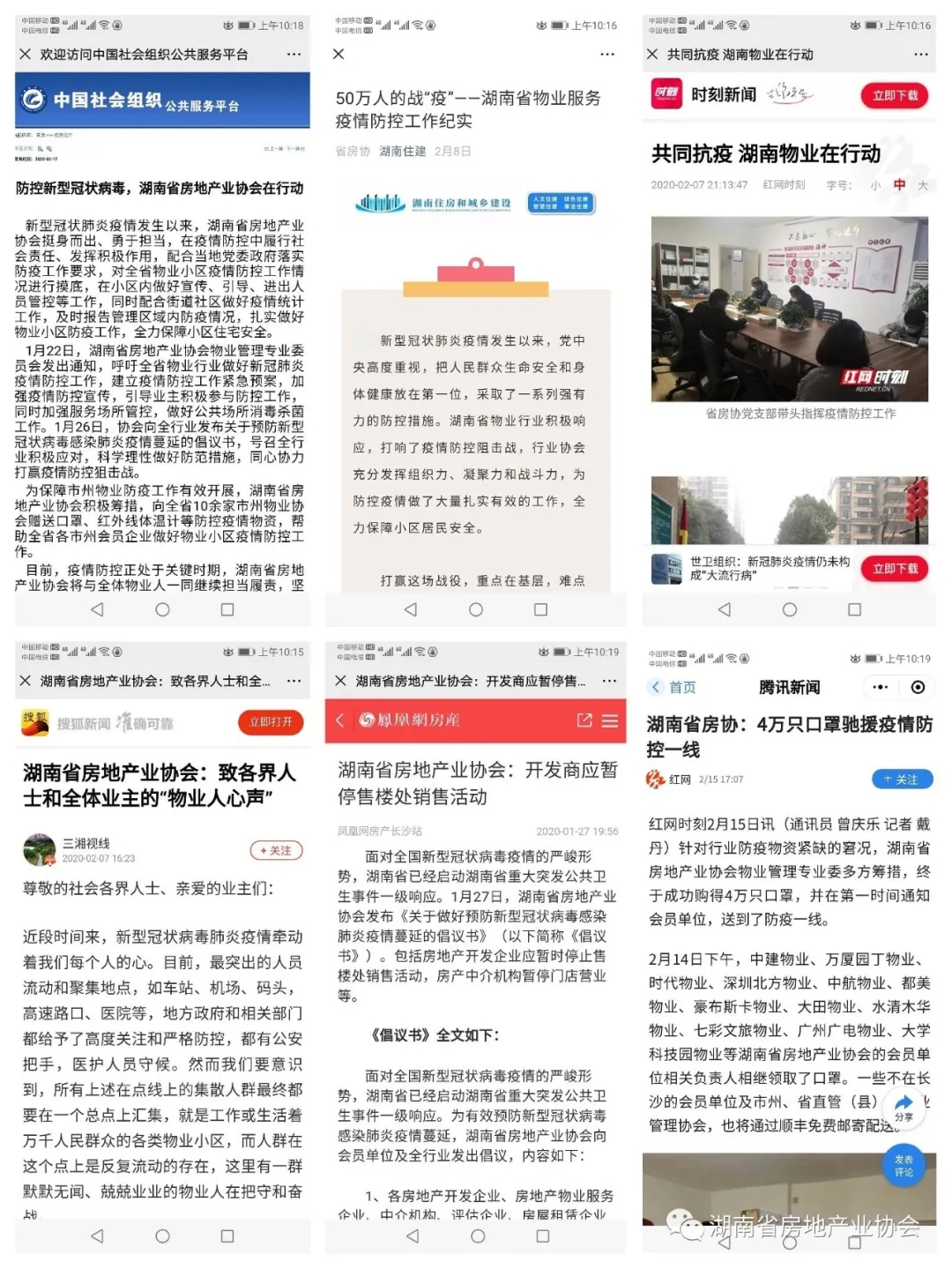 省房協積極聯系省內外媒體為湖南省房地產行業防疫工作宣傳鼓勁,宣傳戰“疫”過程中的典型人物和事跡。截至目前省房協官方微信和官網發布疫情新聞超100條,并在民政部國家社會組織管理局官網中國社會組織公共服務平臺、中國物業管理協會官網、公眾號,中國建設報、新華網、搜狐網、湖南日報、新湖南、紅網、新浪樂居、瀟湘晨報等國家、省級媒體,發表抗疫新聞60多條。