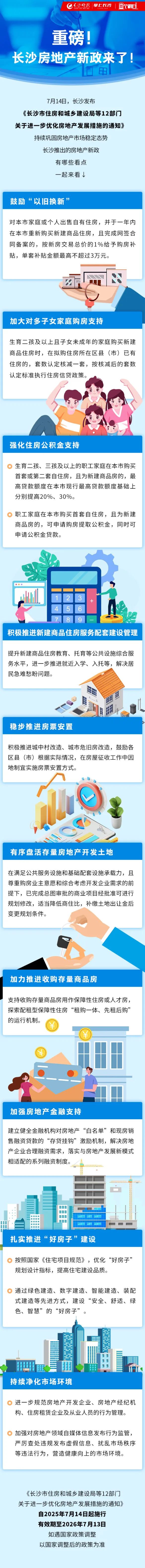 《通知》自2025年7月14日起施行,有效期為一年。同時,市直相關(guān)部門將結(jié)合實際情況進一步細化對應(yīng)舉措。市住房城鄉(xiāng)建設(shè)局相關(guān)負責(zé)人表示,通過供給端、需求端、政策端協(xié)同發(fā)力,將進一步穩(wěn)定市場預(yù)期,確保長沙房地產(chǎn)市場持續(xù)平穩(wěn)健康發(fā)展。