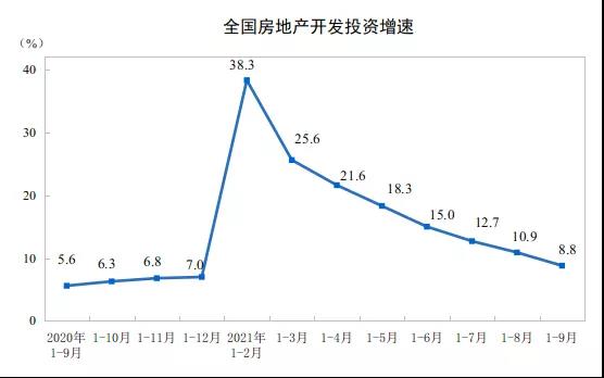 1—9月份,全國房地產開發投資112568億元,同比增長8.8%;比2019年1—9月份增長14.9%,兩年平均增長7.2%。其中,住宅投資84906億元,增長10.9%。