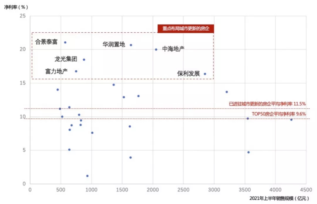 圖:TOP50已進駐城市更新的房企凈利率情況