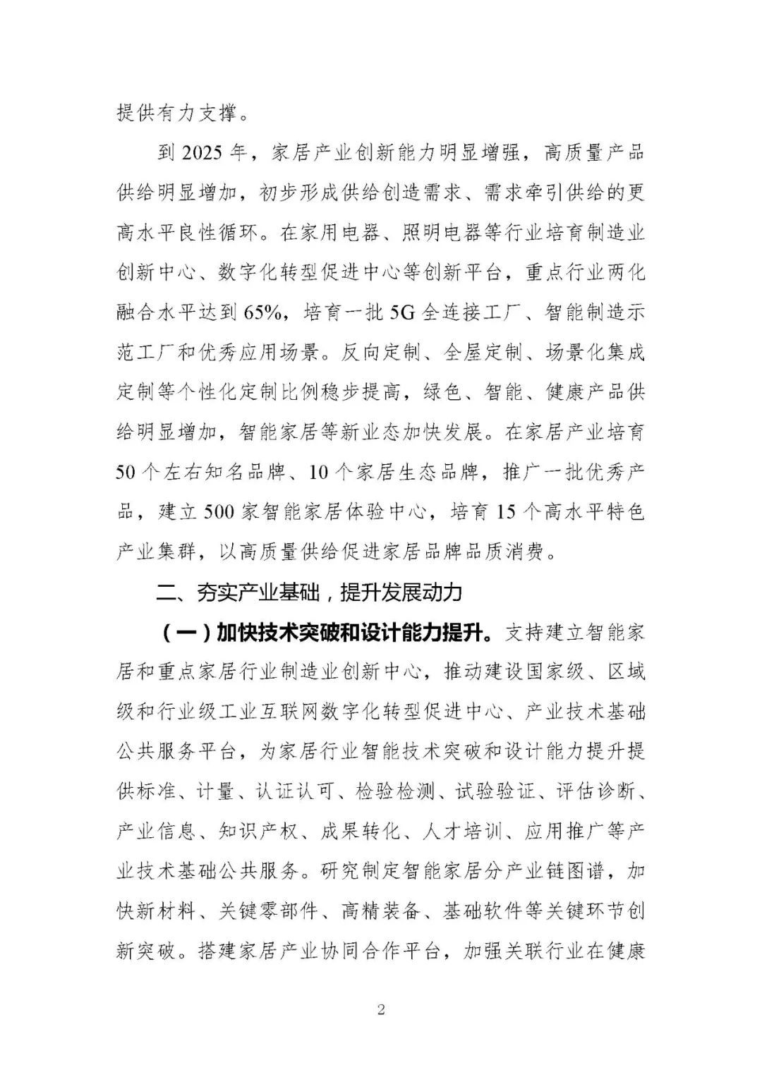 《方案》明確發展目標,到2025年,在家用電器、照明電器等行業培育制造業創新中心、數字化轉型促進中心等創新平臺,重點行業兩化融合水平達到65%,培育一批5G全連接工廠、智能制造示范工廠和優秀應用場景。反向定制、全屋定制、場景化集成定制等個性化定制比例穩步提高,綠色、智能、健康產品供給明顯增加,智能家居等新業態加快發展。