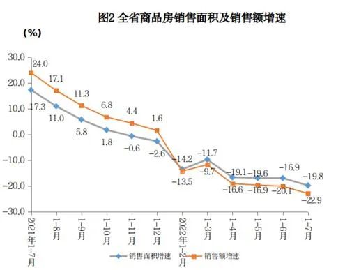 1-7月,全省商品房銷售面積3975.61萬平方米,同比下降19.8%。其中,住宅銷售面積下降22.3%,辦公樓銷售面積下降16.5%,商業(yè)營業(yè)用房銷售面積增長(zhǎng)1.2%。商品房銷售額2525.07億元,下降22.9%。其中,住宅銷售額下降25.5%,辦公樓銷售額下降34.4%,商業(yè)營業(yè)用房銷售額增長(zhǎng)1.3%。