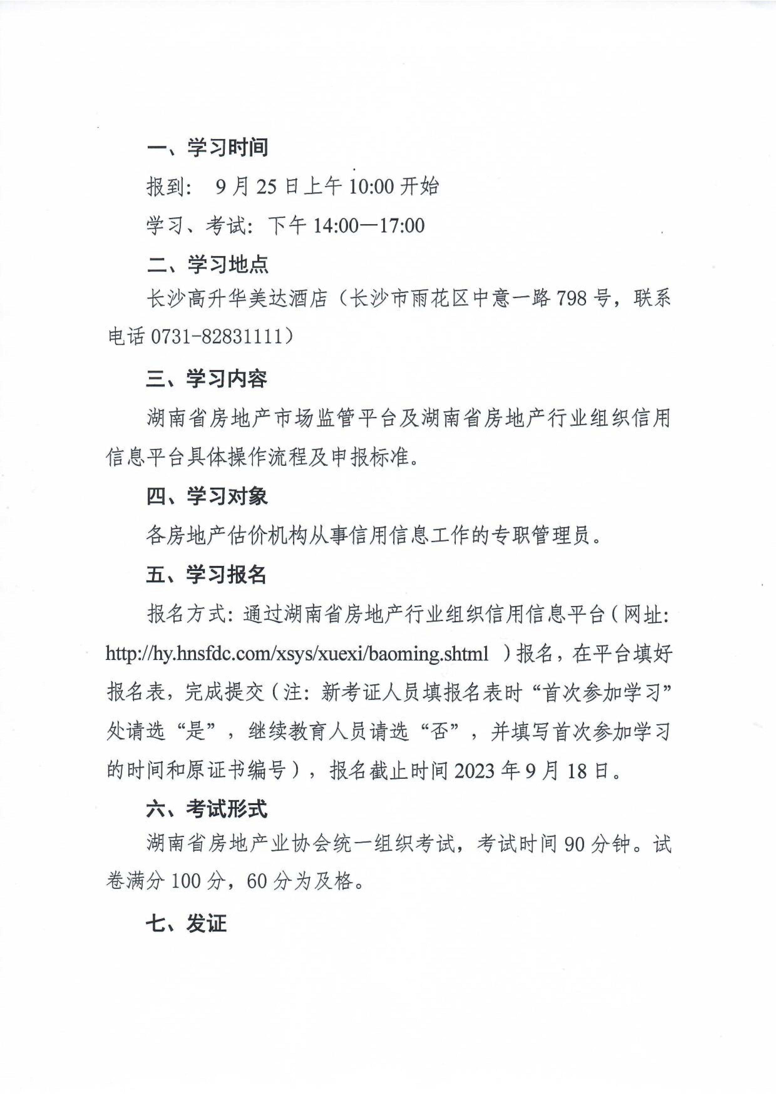 報(bào)名方式:通過湖南省房地產(chǎn)行業(yè)組織信用信息平臺(tái)(網(wǎng)址:http://hy.hnsfdc.com/xsys/xuexi/baoming.shtml )報(bào)名,在平臺(tái)填好報(bào)名表,完成提交(注:新考證人員填報(bào)名表時(shí)“首次參加學(xué)習(xí)”處請(qǐng)選“是”,繼續(xù)教育人員請(qǐng)選“否”,并填寫首次參加學(xué)習(xí)的時(shí)間和原證書編號(hào)),報(bào)名截止時(shí)間2023年9月18日。