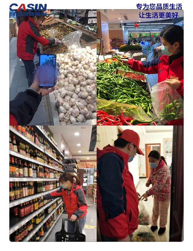 5、項(xiàng)目經(jīng)理趙鋒帶著客服小姐姐們一起到超市為業(yè)主代購副食品以及新鮮蔬菜,讓業(yè)主感受到溫暖。