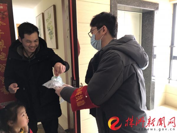 (志愿服務(wù)隊(duì)為業(yè)主派送口罩)