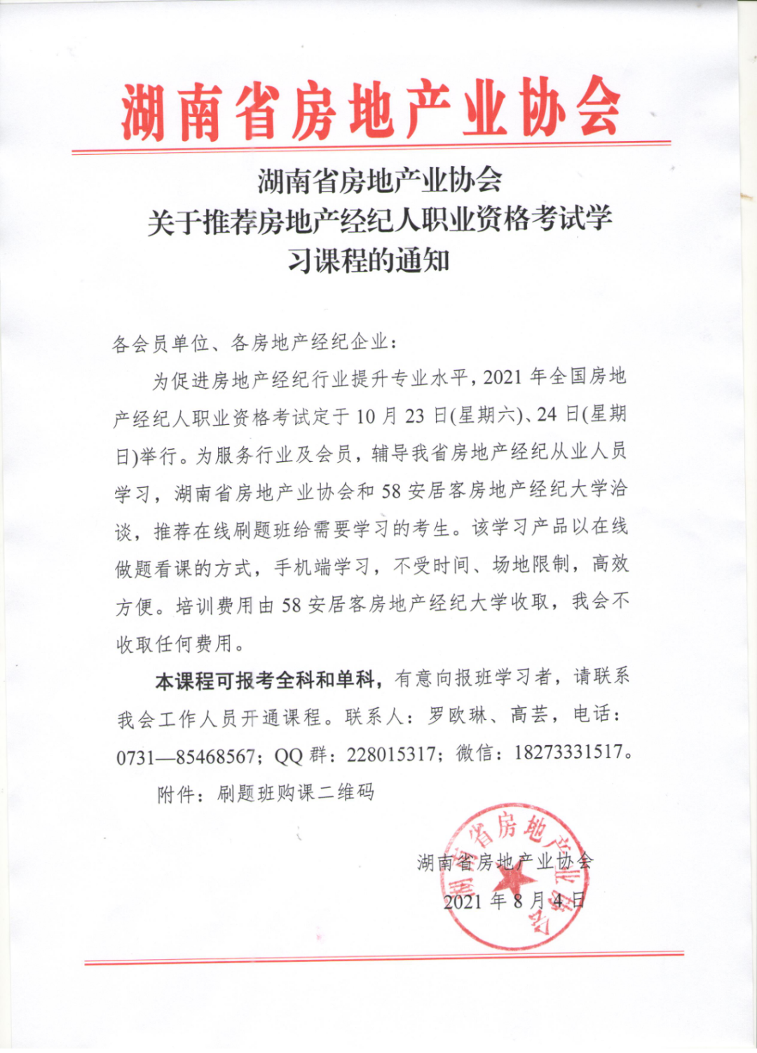 關(guān)于推薦房地產(chǎn)經(jīng)紀(jì)人職業(yè)資格考試學(xué)習(xí)課程的通知