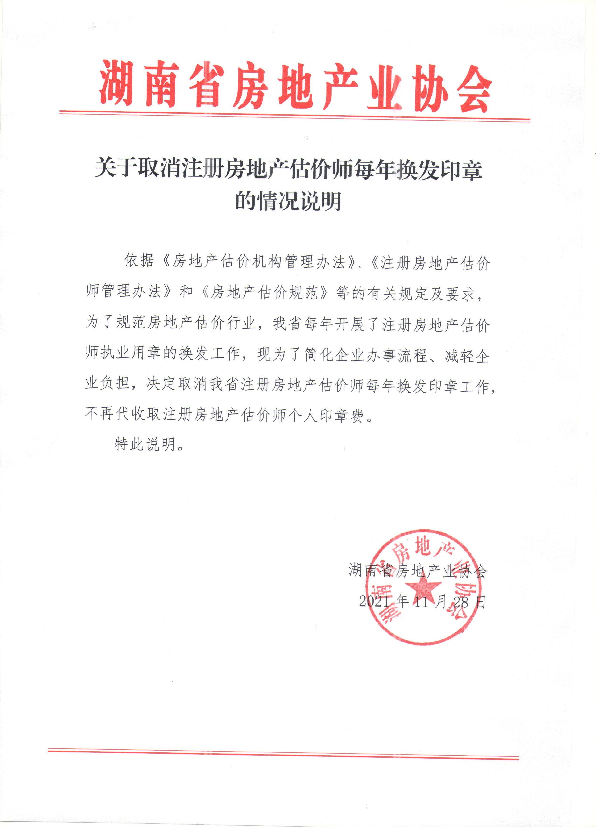 關于取消注冊房地產估價師每年換發印章的情況說明