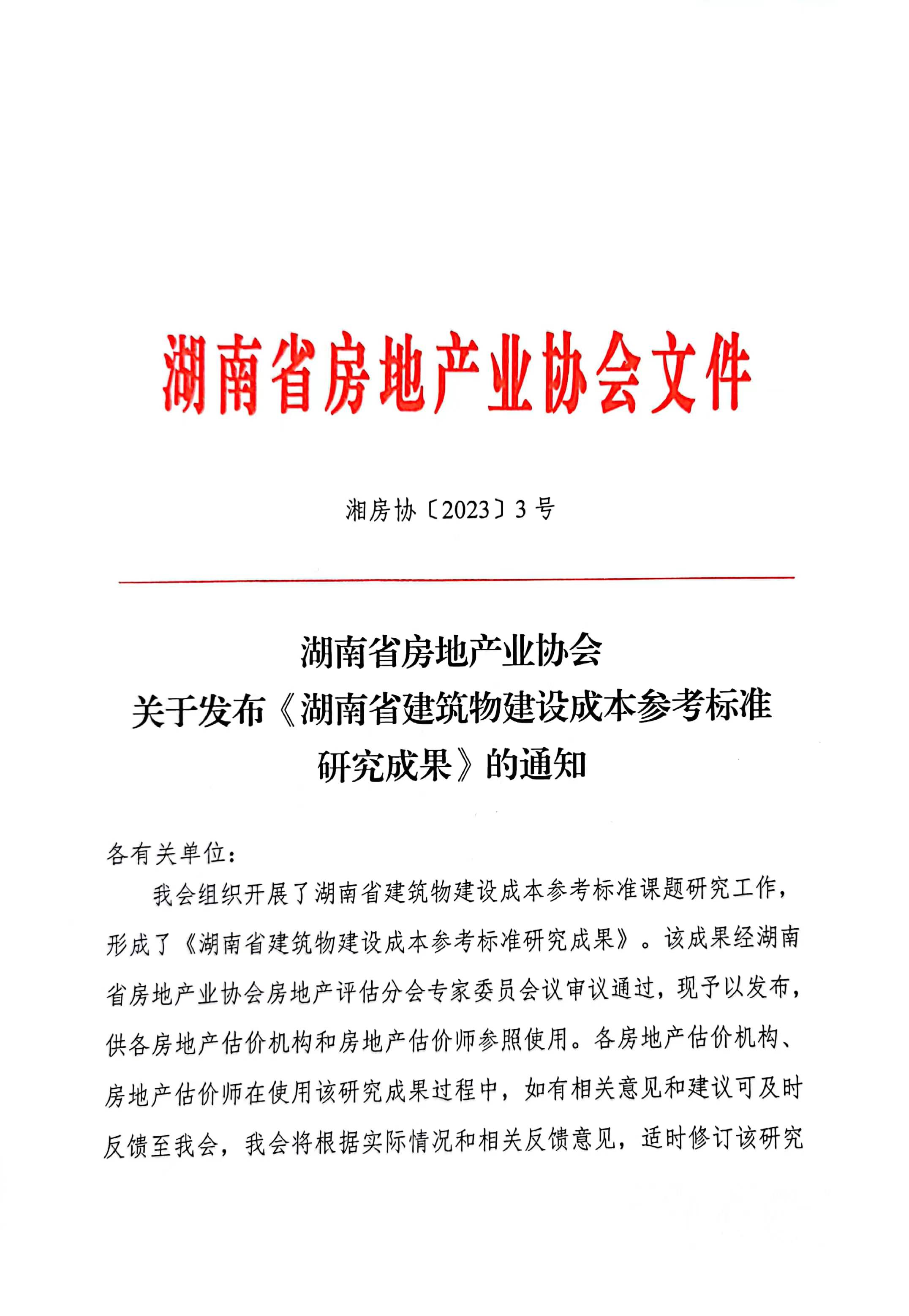 湖南省房地產(chǎn)業(yè)協(xié)會(huì)關(guān)于發(fā)布《湖南省建筑物建設(shè)成本參考標(biāo)準(zhǔn)研究成果》的通知
