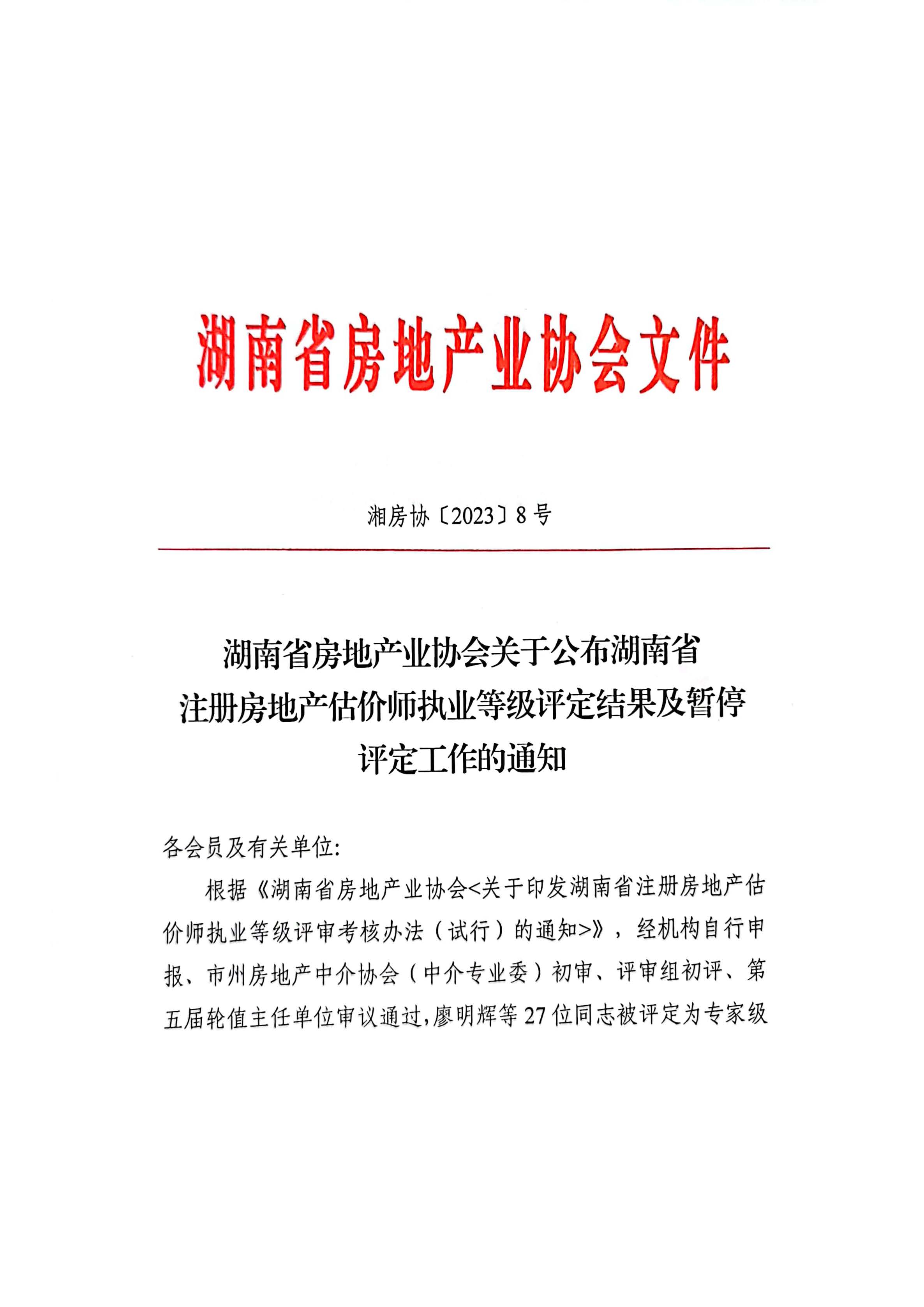 關(guān)于公布湖南省注冊房地產(chǎn)估價師執(zhí)業(yè)等級評定結(jié)果及暫停評定工作的通知