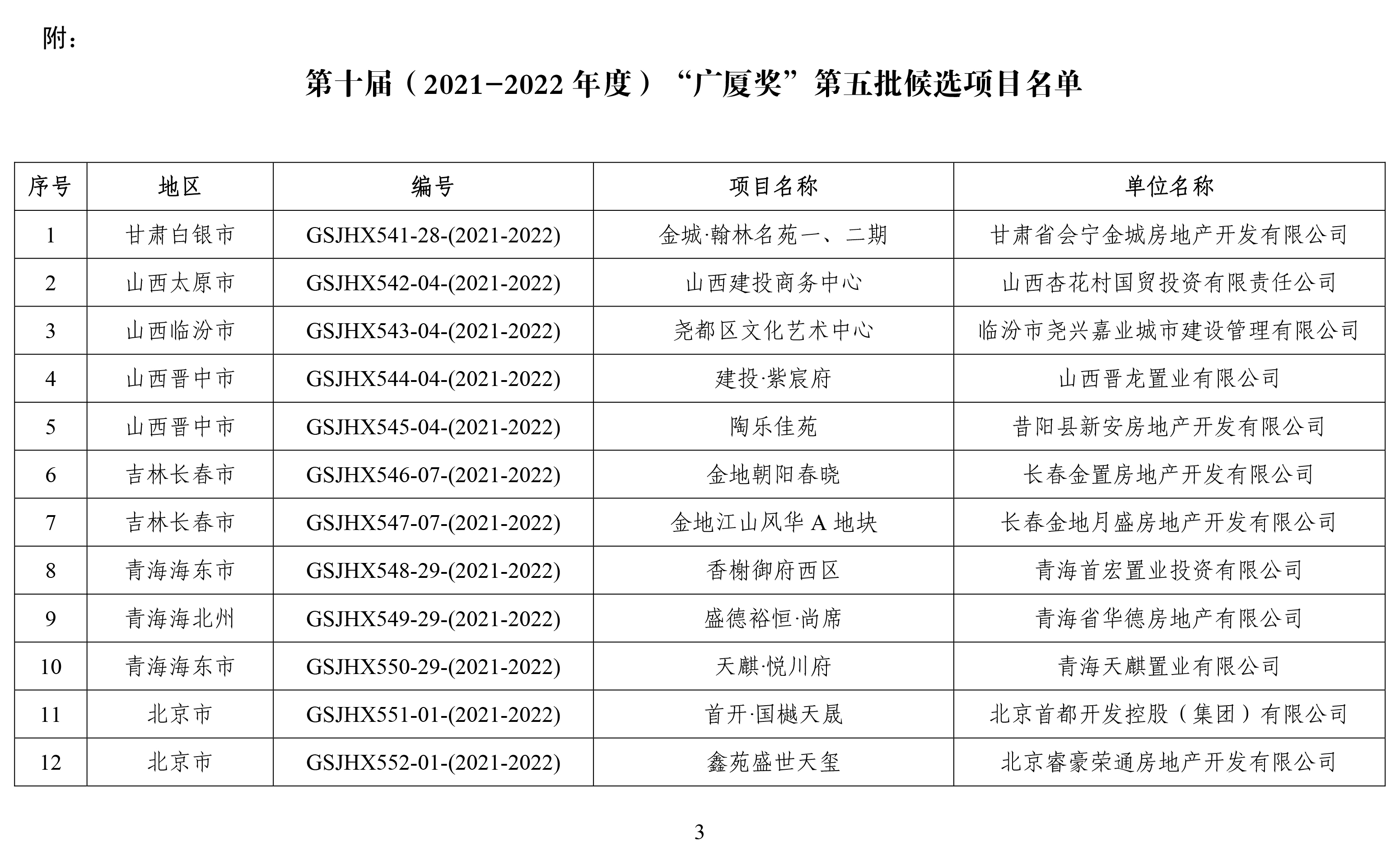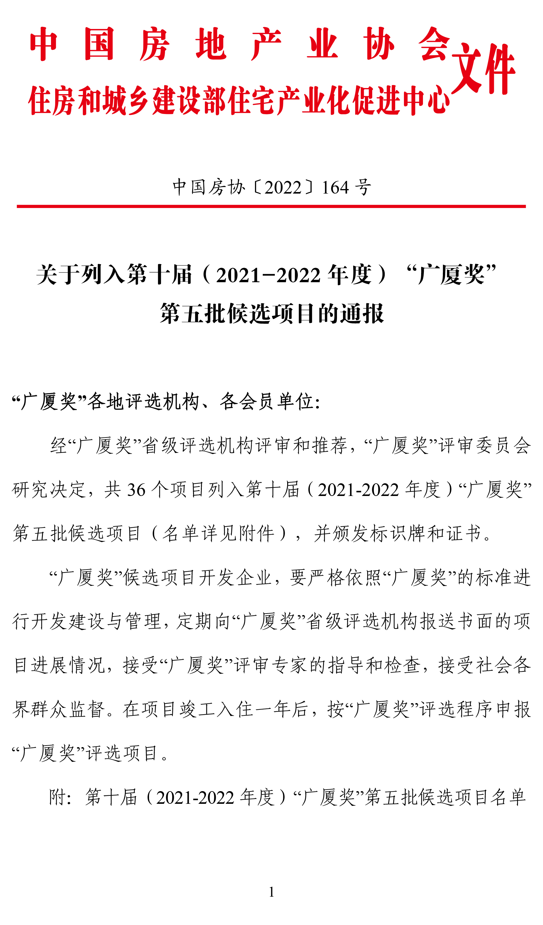 關(guān)于列入第十屆(2021-2022年度)“廣廈獎”第五批候選項目的通報