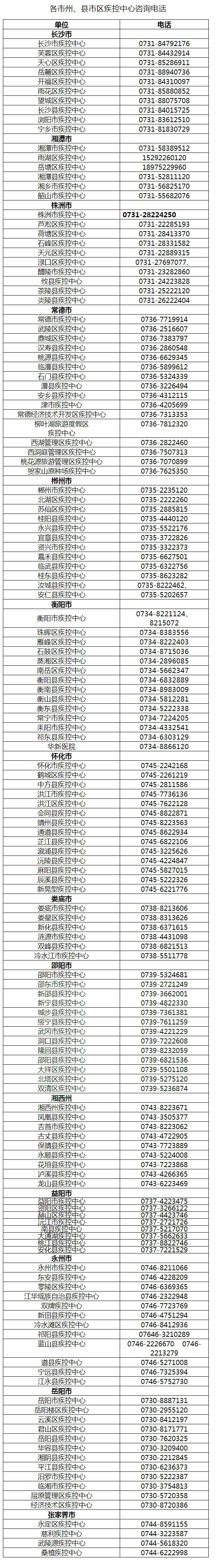 各市州、縣市區(qū)疾控中心咨詢電話