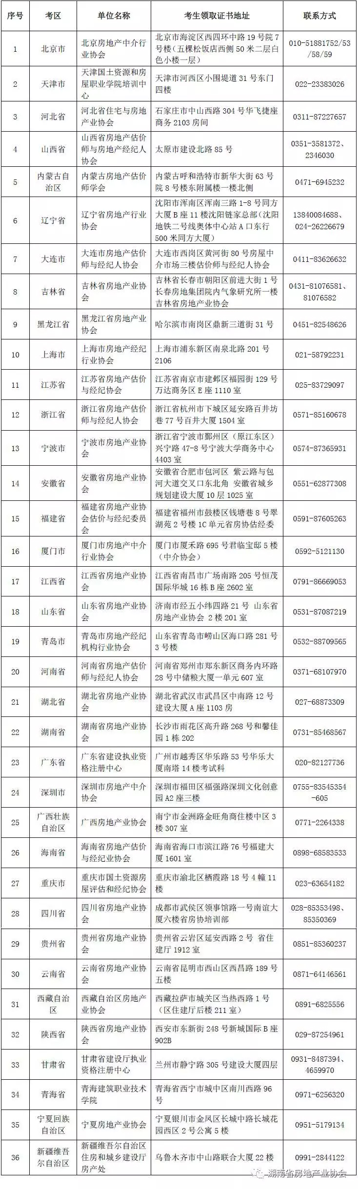 資格證書領取單位名稱、地址及聯系方式見附表,具體領取時間以各地方考試實施機構安排為準。